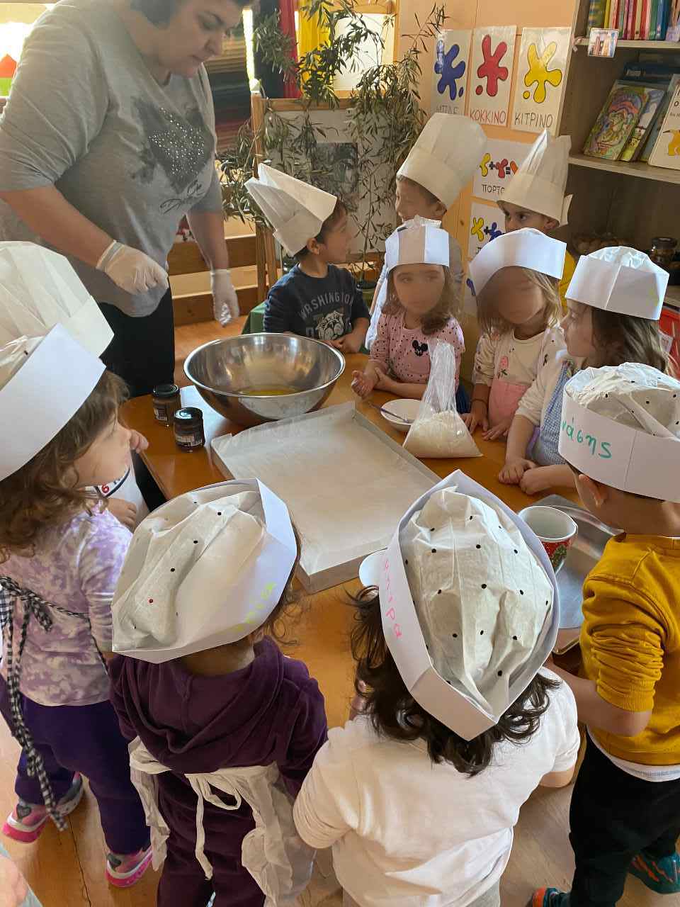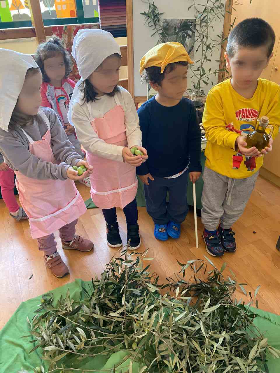 Επιπλέον, τα μικρά παιδάκια του Α’ Συγκροτήματος, είχαν την ευκαιρία με ένα κλαδί ελιάς να βιώσουν μέσα από τη δραματοποίηση το λιομάζεμα, να μάθουν για την ιστορία της ελιάς, τη διαδικασία καλλιέργειας και την διατροφική της αξία, να φτιάξουν ελαιόψωμα, να ζωγραφίσουν και να δημιουργήσουν κατασκευές.