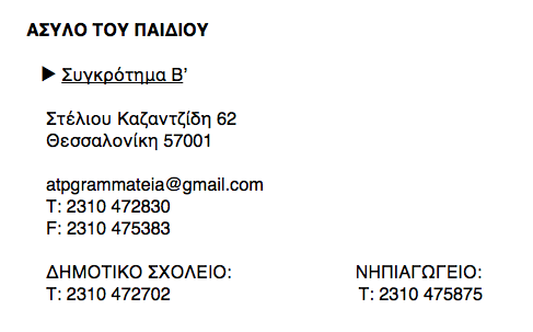 ASYLO TOU PAIDIOU . Egnatia 129 . THESSALONIKI GR 54638 . Τ: +302310 209398 . FAX: +302310 202449