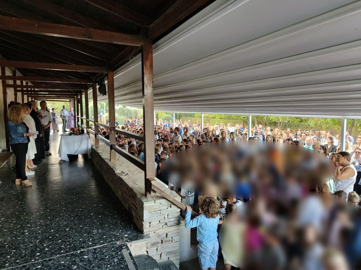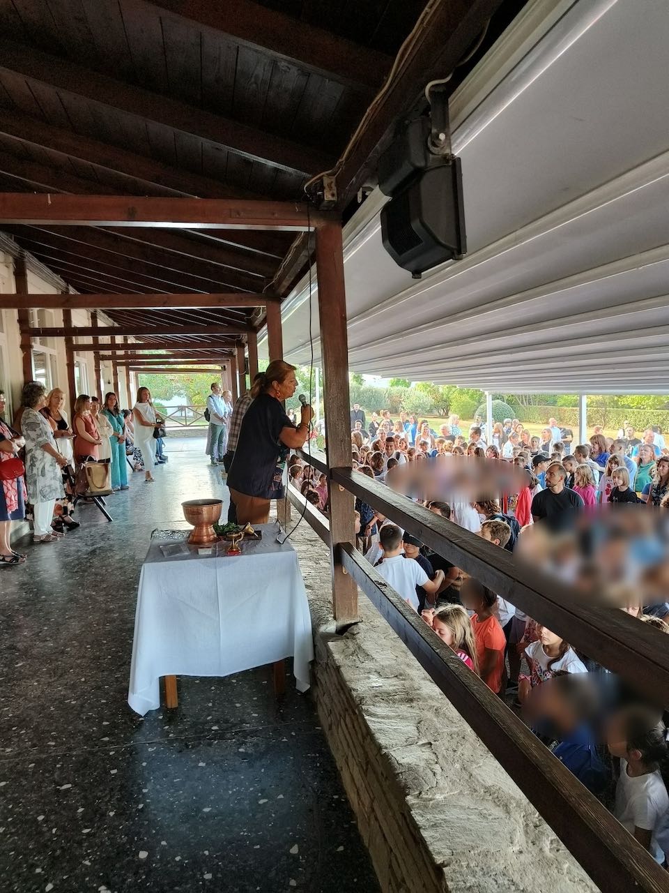 Στον Αγιασμό του Β’ Συγκροτήματος για τη νέα σχολική χρονιά, παραβρέθηκε η κ. Βαλσαμίδου Πασχαλίνα, Σύμβουλος Εκπαίδευσης 3ης θέσης Πρωτοβάθμιας Εκπαίδευσης Ανατολικής Θεσσαλονίκης, η οποία ευχήθηκε στα παιδιά και στους γονείς καλή, ευλογημένη και δημιουργική σχολική χρονιά. Χαιρετισμό στους γονείς, τα παιδιά και τους εκπαιδευτικούς απηύθυνε και η εκπρόσωπος του Δήμου Πυλαίας-Χορτιάτη κ. Αγαθοκλέους Άρτεμις.