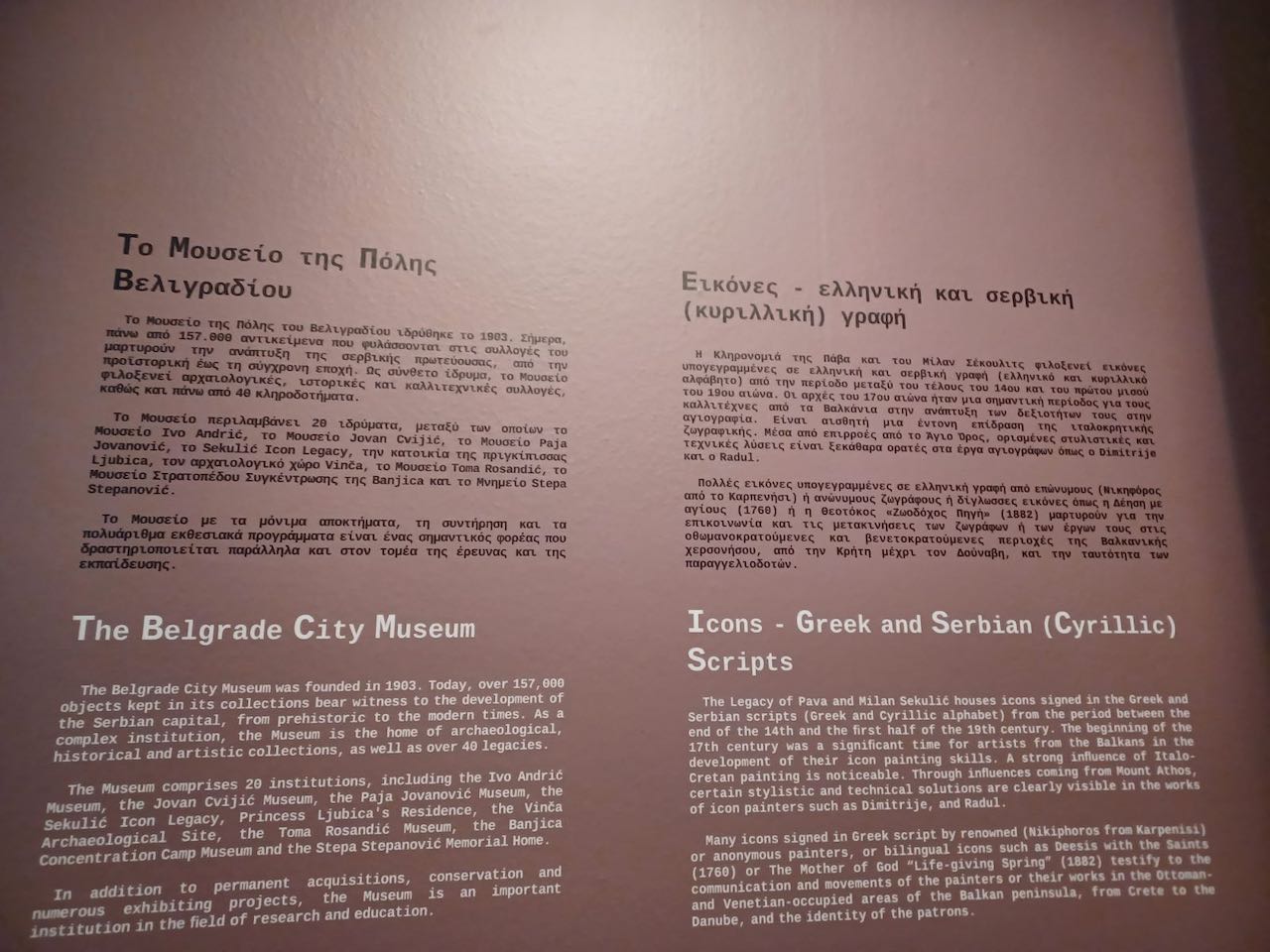 Την Τρίτη 7 Φεβρουαρίου 2023 πραγματοποιήθηκε ξενάγηση στο Μουσείο Βυζαντινού Πολιτισμού, στην έκθεση «Από την Κρήτη στον Δούναβη. Εικόνες από τη Συλλογή Σέκουλιτς, Μουσείο της πόλης Βελιγραδίου».