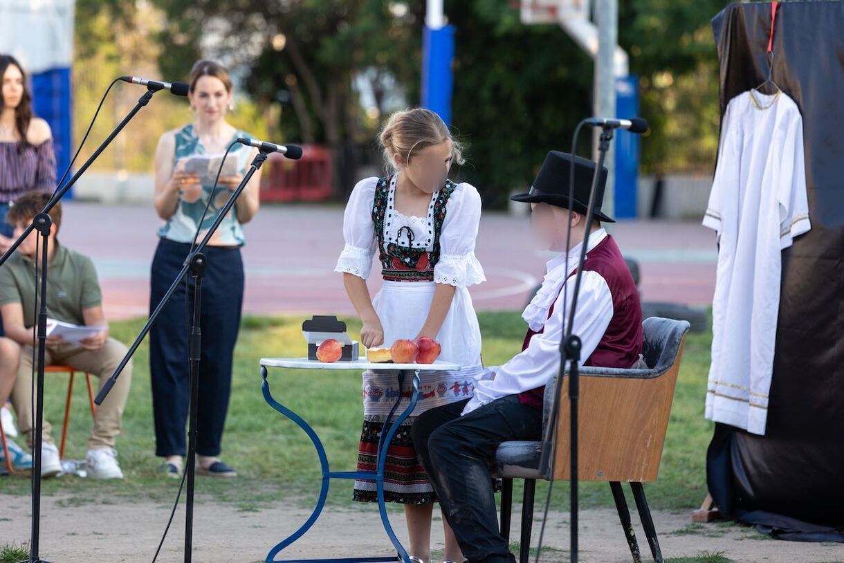 Ιδιαίτερη στιγμή της γιορτής ήταν η παρουσίαση ενός πρωτότυπου τραγουδιού στα γερμανικά από παιδιά της Β’ Δημοτικού. Το τραγούδι αυτό δημιουργήθηκε από λέξεις και φράσεις που έμαθαν κατά τη διάρκεια της σχολικής χρονιάς, στο πλαίσιο του εργαστηρίου γνωριμίας με τη γερμανική γλώσσα και κουλτούρα, αναδεικνύοντας τις γλωσσικές τους δεξιότητες.