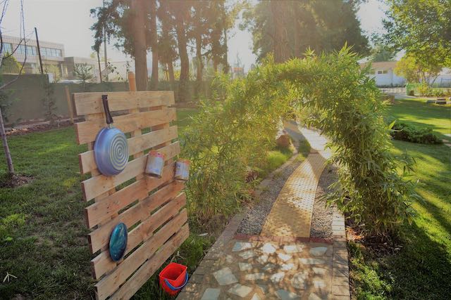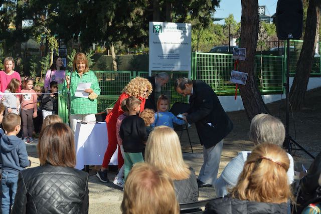 Σε μία έκταση 2000 τ.μ. κατασκευάστηκε ένας κήπος ο οποίος ικανοποιεί τις ανάγκες των παιδιών για ελεύθερη έκφραση, δημιουργικό παιχνίδι και παιδαγωγικές δραστηριότητες συντελώντας στην ψυχική και σωματική τους ανάπτυξη.