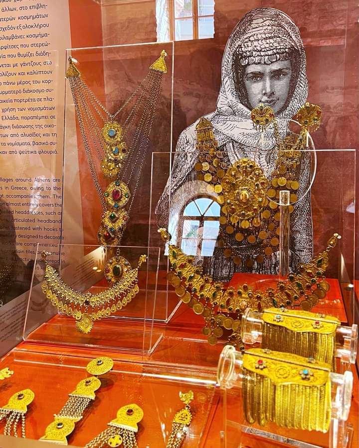 Εκεί θαυμάσαμε ορισμένα από τα ομορφότερα κοσμήματα, δείγματα της ελληνικής αργυροχρυσοχοΐας από τον 17ο έως τον 19ο αιώνα, από διάφορες περιοχές της Ελλάδας.