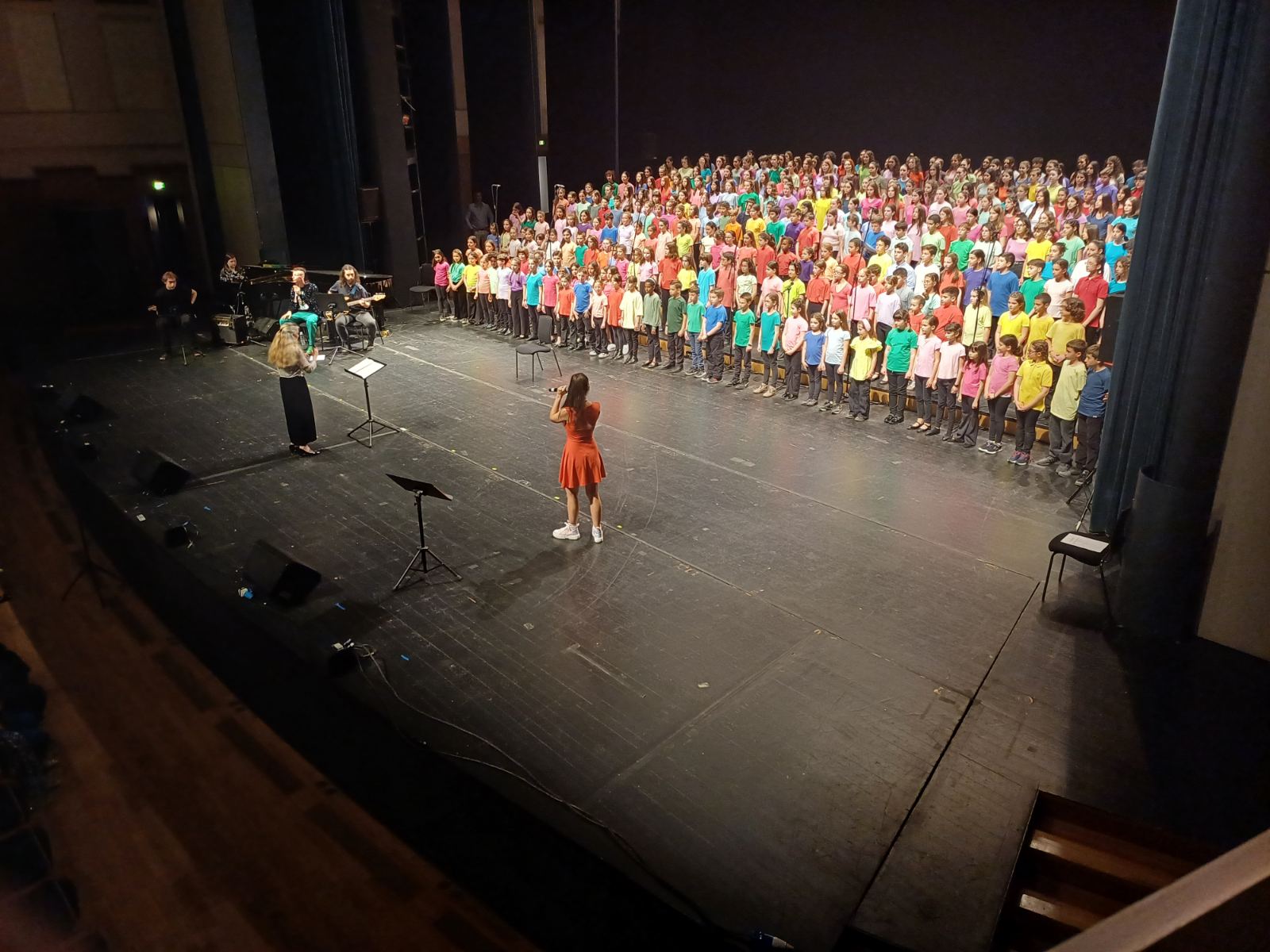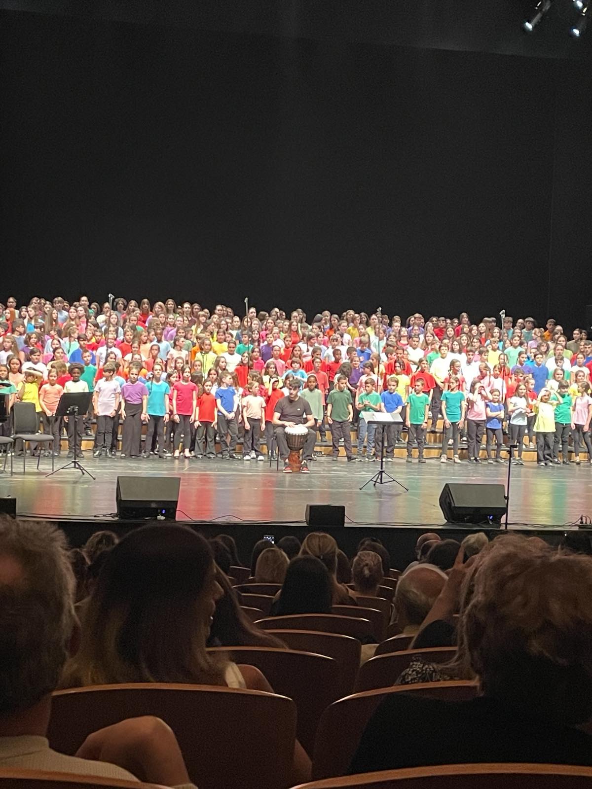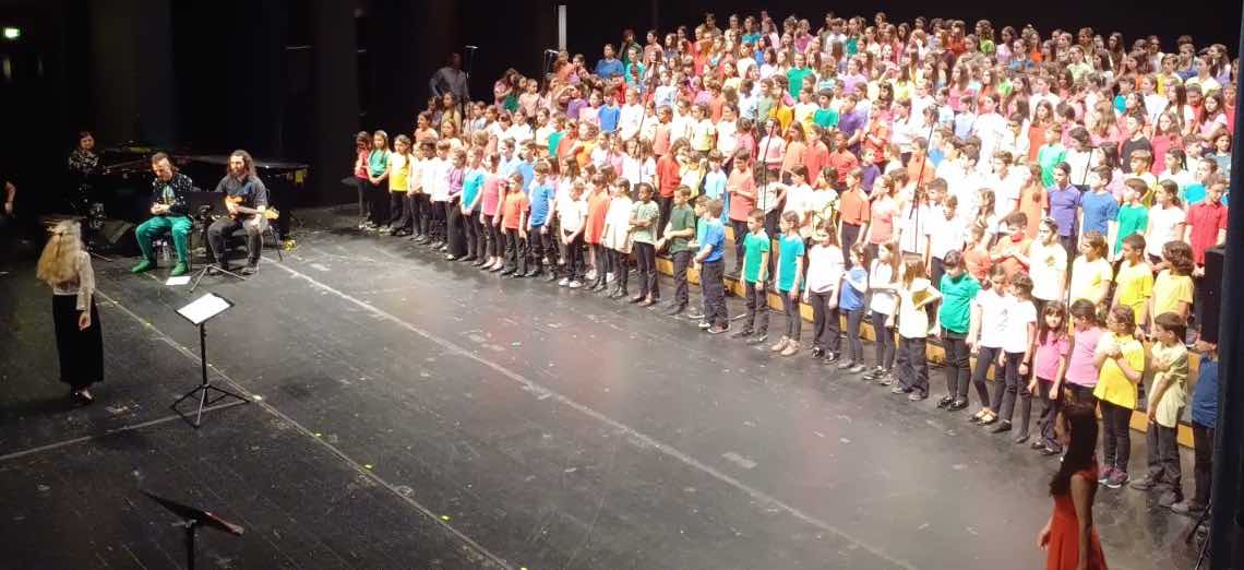 Η σκηνή «πλημμύρισε» με παιδικές και νεανικές φωνές από τα εκατοντάδες παιδιά και νέους που έλαβαν μέρος σε αυτή τη μεγάλη μουσική γιορτή.