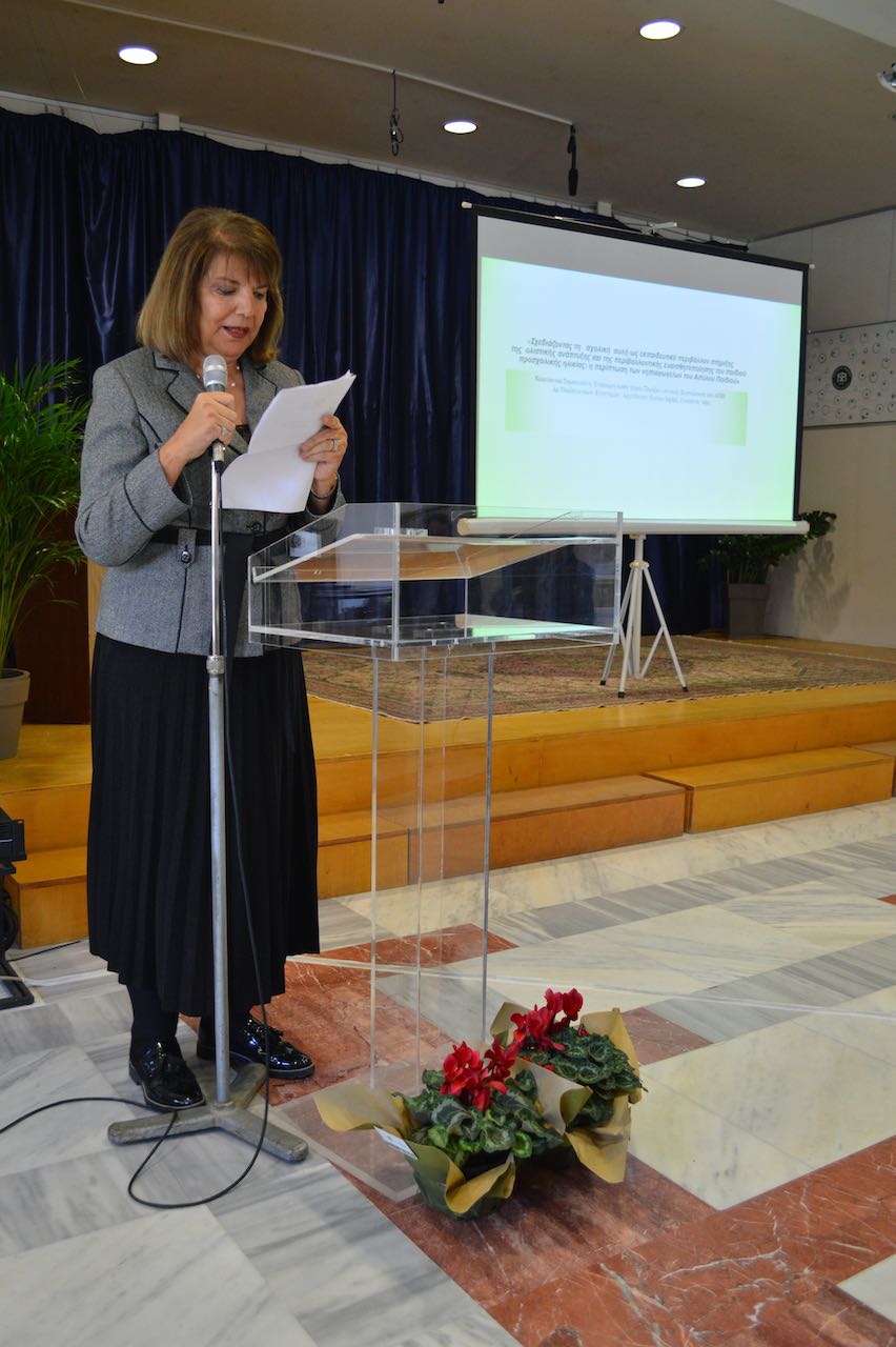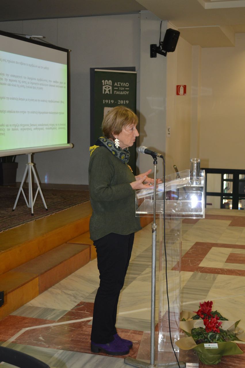 Ακολούθησε η ομιλία της Αρχιτέκτονος Τοπίου και Επίκουρης Καθηγήτριας της Παιδαγωγικής Σχολής του Α.Π.Θ., κ. Κωνσταντίνας Ταμουτσέλη. Η κ. Ταμουτσέλη ανέπτυξε τη φιλοσοφία του σχεδιασμού της Παιδικής Χαράς του Α΄ και Β΄ Συγκροτήματος του “ΑτΠ”, τονίζοντας τη σημασία της επαφής των παιδιών με τη φύση και το πράσινο. Δημιουργήθηκε έτσι ένα περιβάλλον πλούσιο σε αισθητηριακά ερεθίσματα, το οποίο κοσμεί τα δύο συγκροτήματα του Ιδρύματος.