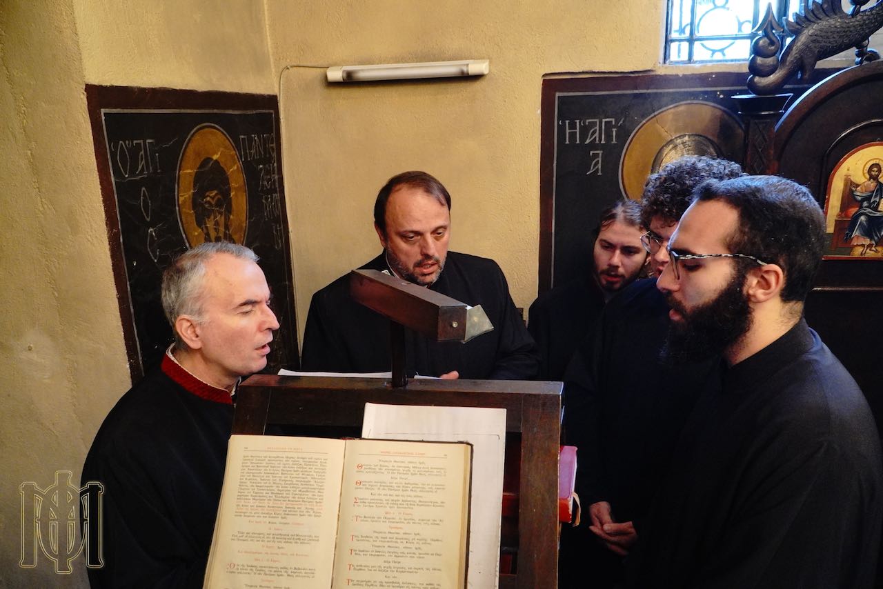 Στην ακολουθία της Θείας Λειτουργίας, η κατανυκτική ατμόσφαιρα ενισχύθηκε από τη συμμετοχή του Δρ. Σωτήρη Δεσπότη, ο οποίος μαζί με μέλη του Χορού «Εργαστήρι Παρασημαντικής», δημιούργησαν μια ιδιαίτερα συγκινητική και κατανυκτική ατμόσφαιρα.