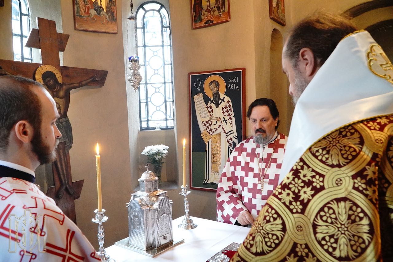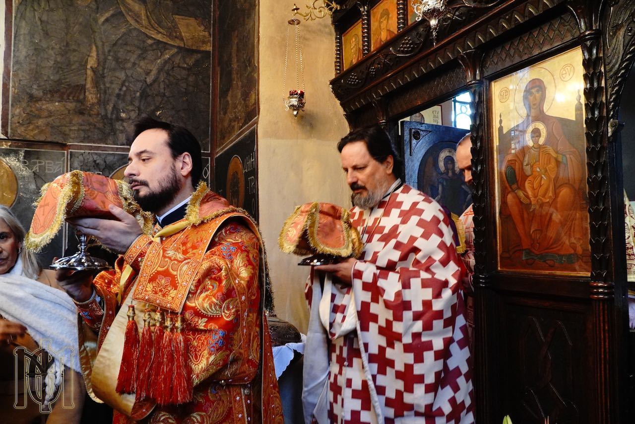 Στη Θεία Λειτουργία προεξήρχε ο Μητροπολίτης Θεσσαλονίκης κ. Φιλόθεος, ο οποίος συλλειτούργησε με τον Πρωτοπρεσβύτερο Γεώργιο Χειλά, Καθηγητή της Θεολογικής Σχολής του Αριστοτελείου Πανεπιστημίου Θεσσαλονίκης, και τον Πρεσβύτερο Βασίλειο Κόχιλετς.