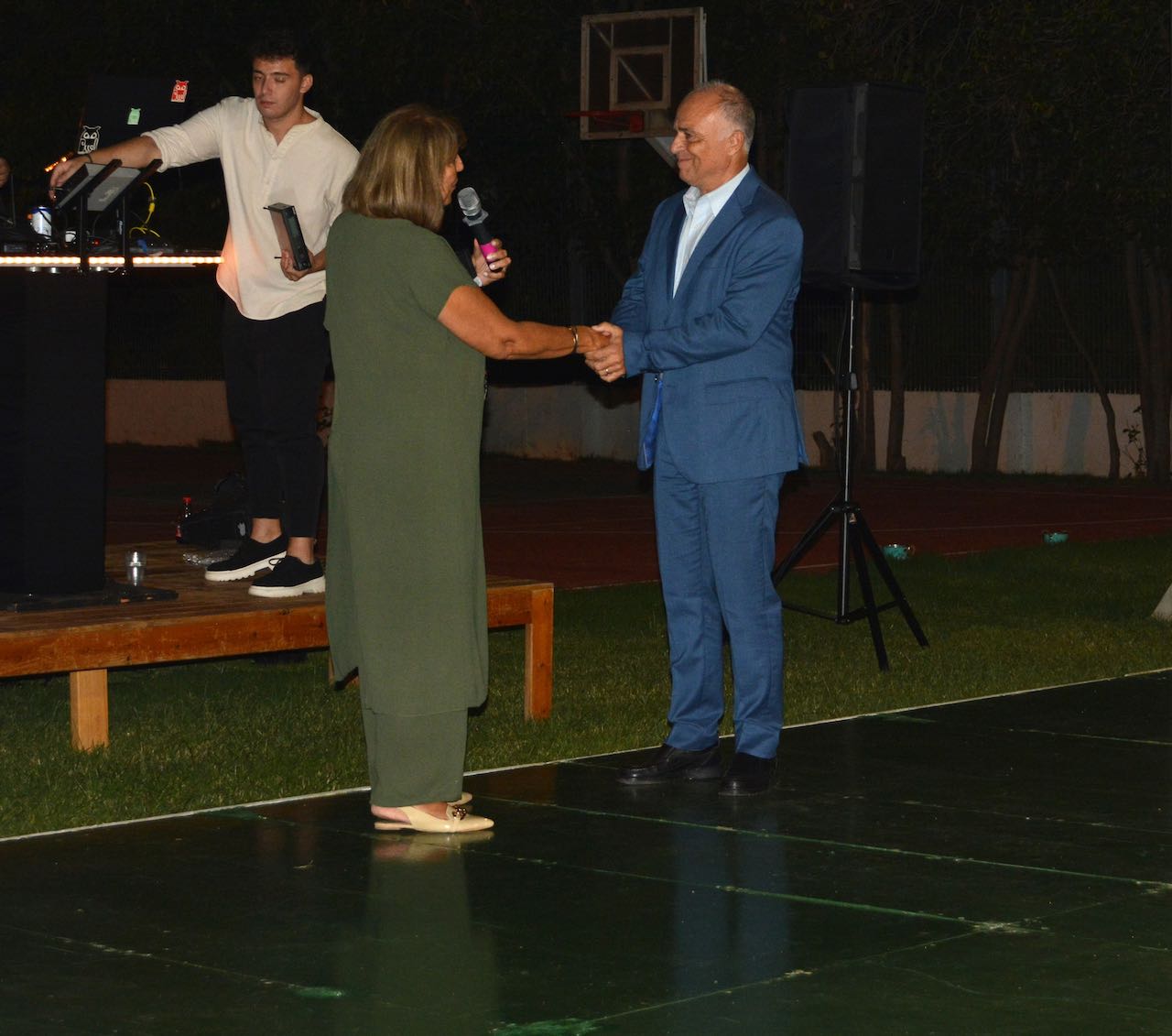 Στην εκδήλωση απηύθυνε χαιρετισμό η Πρόεδρος κ. Φωτεινή Παπαδάμου η οποία έδωσε τιμητική πλακέτα στον εκπρόσωπο της Ελληνικό Μετρό στη Θεσσαλονίκη, κ. Νικόλαο Δένη, για τη χορηγία της αναδιαμόρφωσης του αυλείου χώρου του Α’ Συγκροτήματος του «ΑτΠ».